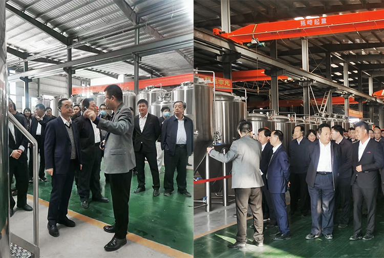 10月28日 省級(jí)領(lǐng)導(dǎo)蒞臨山東匯冠機(jī)械設(shè)備有限公司考察指導(dǎo)。在此期間,各級(jí)領(lǐng)導(dǎo)參觀了啤酒設(shè)備生產(chǎn)車(chē)間、灌裝設(shè)備生產(chǎn)車(chē)間,以及啤酒設(shè)備、灌裝設(shè)備展示車(chē)間。